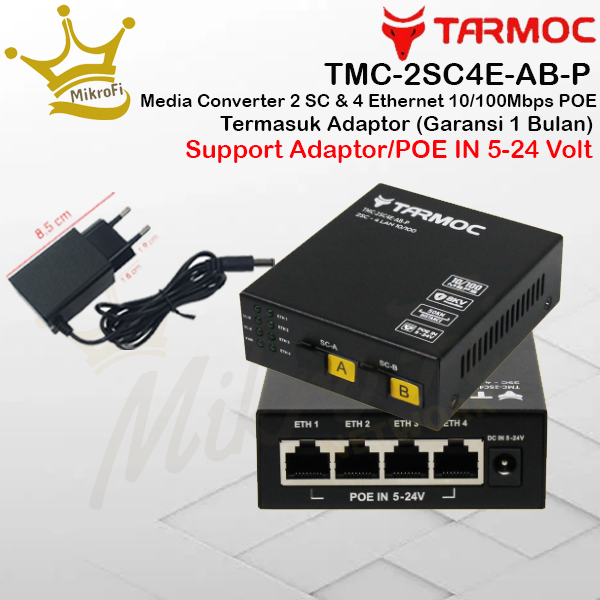 TARMOC TMC-2SC4E-AB-P |MEDIA CONVERTER 2 FO 4 LAN / 2FO 4LAN 10/100 POE IN(5-24V)