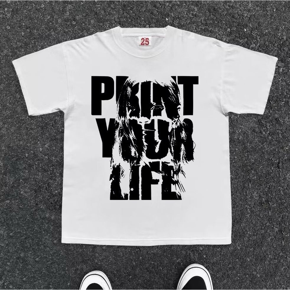 Kaos American Retro Style Motif Print Your Life Print Top Kaos Wanita Hitam Kaos Pria dan Wanita Kaos Cotton Combed 30s