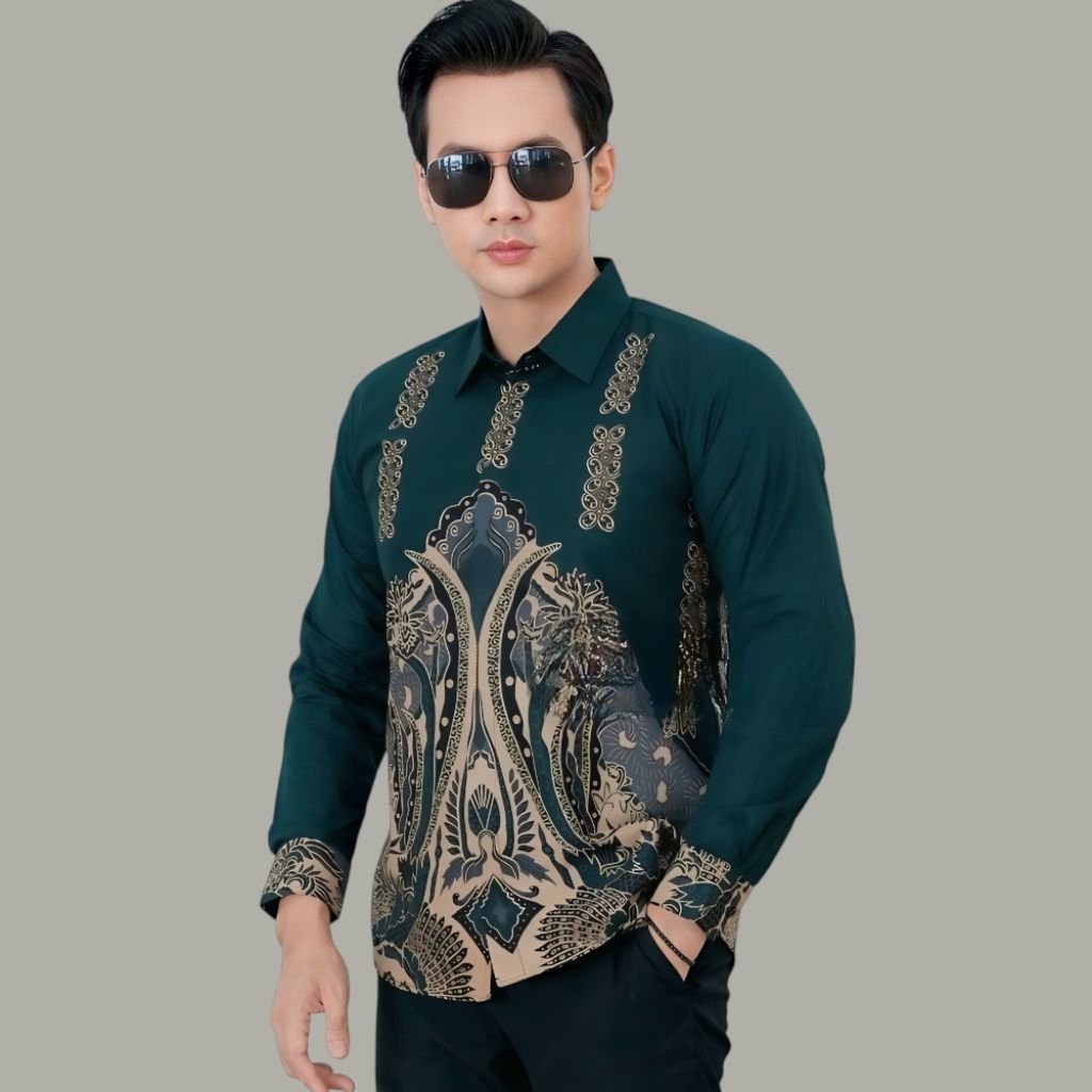 WIRATAMA HIJAU KEMEJA BATIK LENGAN PANJANG DAN PENDEK,BAHAN KATUN PREMIUN, HALUS, ADEM LEMBUT, MENYERAP KERINGAT, BERFUR
