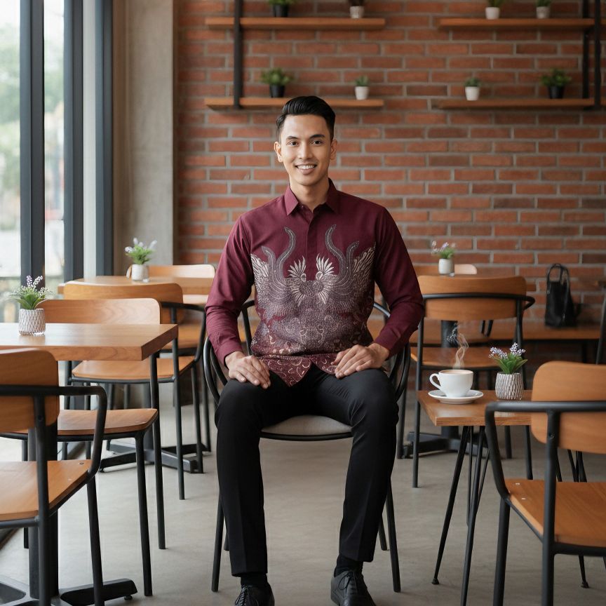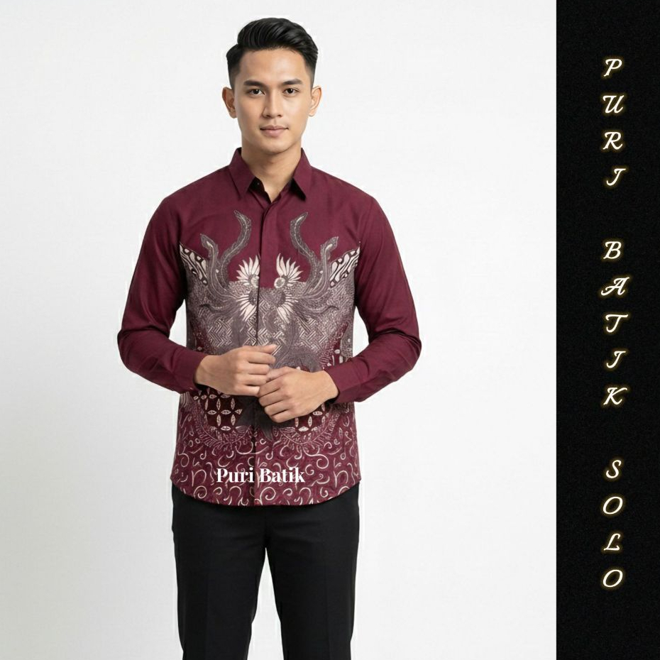 Kemeja Batik Merah burgundy bahan katun cuttingan slimfit premium