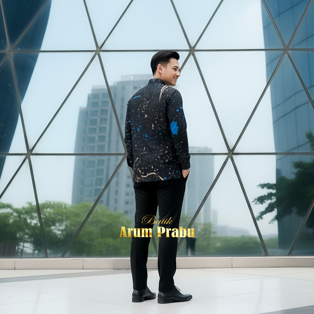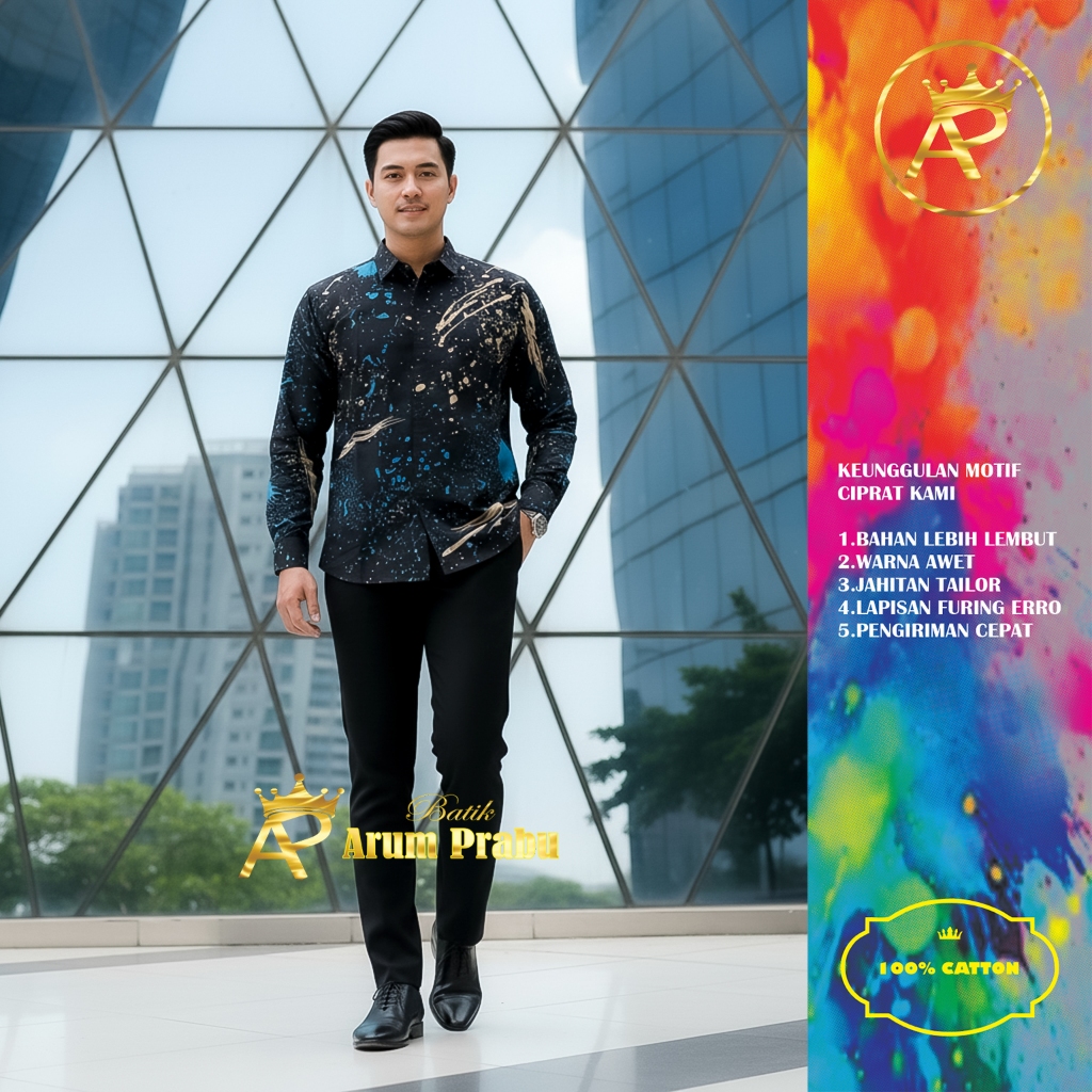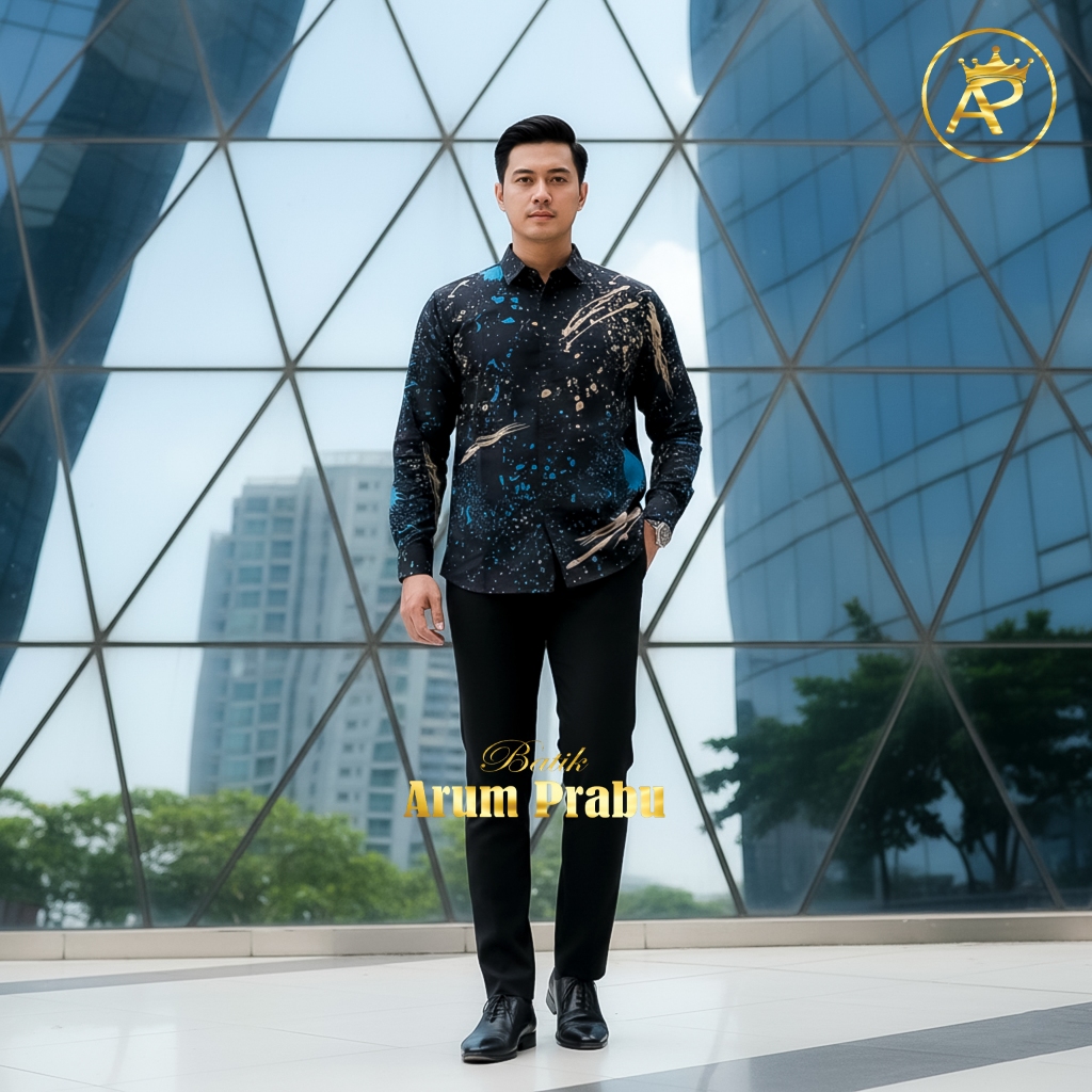 Batik Ciprat Kemensos Warna Hitam Cream Dan Biru Keren Buat Kantoran Dan Pns