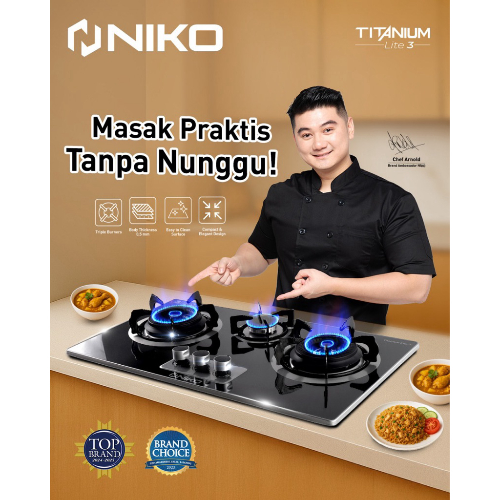 NIKO TITANIUM LITE 3 KOMPOR GAS TANAM STENLIS STEEL / KOMPOR KACA MEWAH BIRU SNI ORI GARANSI RESMI