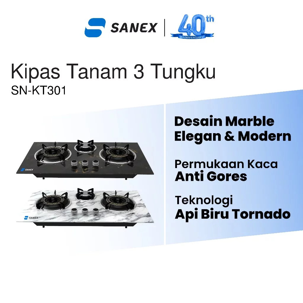 Sanex Kompor Gas Tanam 2 & 3 Tungku SN KT201 & SN KT 301 Marble Series Anti Gores SNKT201 & SNKT301