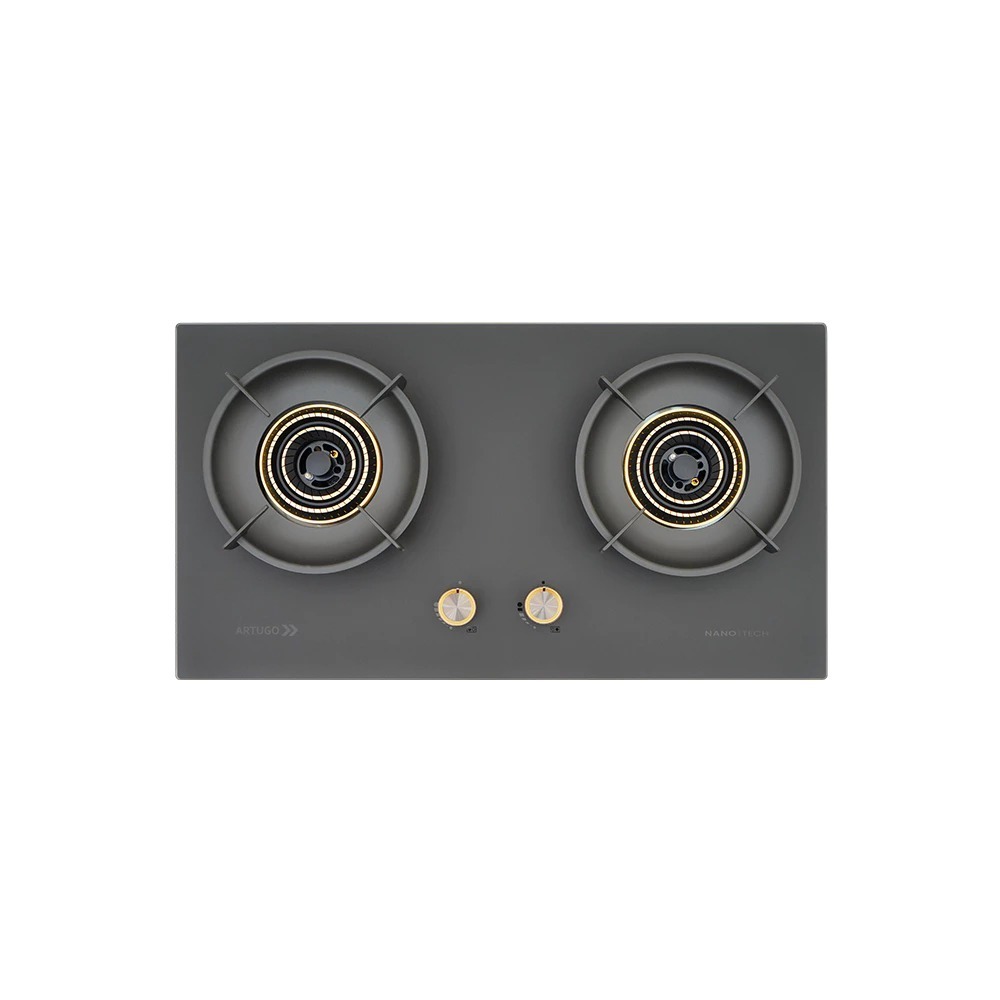 ARTUGO Kompor Tanam Gas 2 Tungku 70 cm AH 2707 BM ICE GLASS + Nano Tech