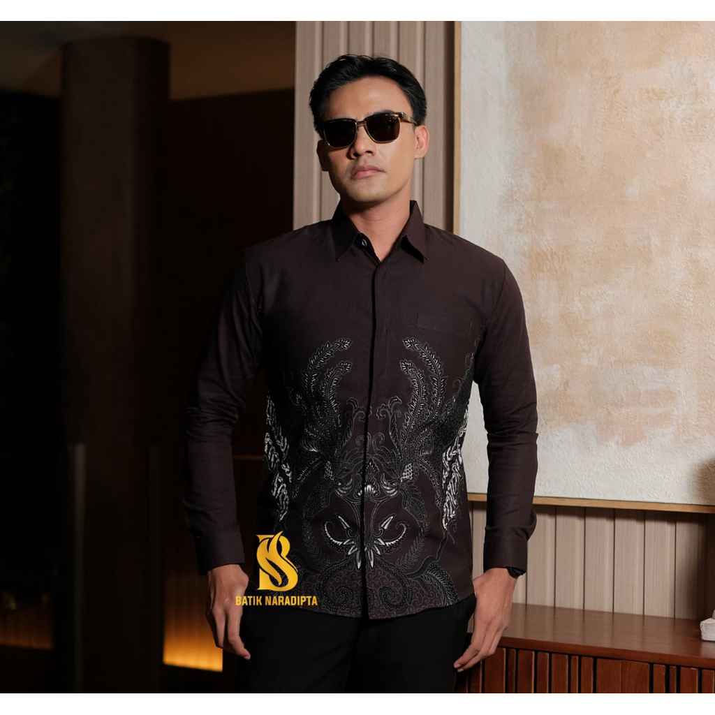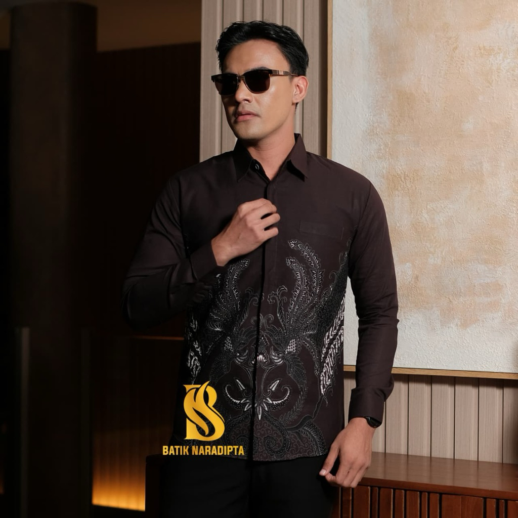 Batik Naradipta ADINATA COKLAT MAHOGANY Kemeja batik lapis furing batik kondangan batik kerja keren