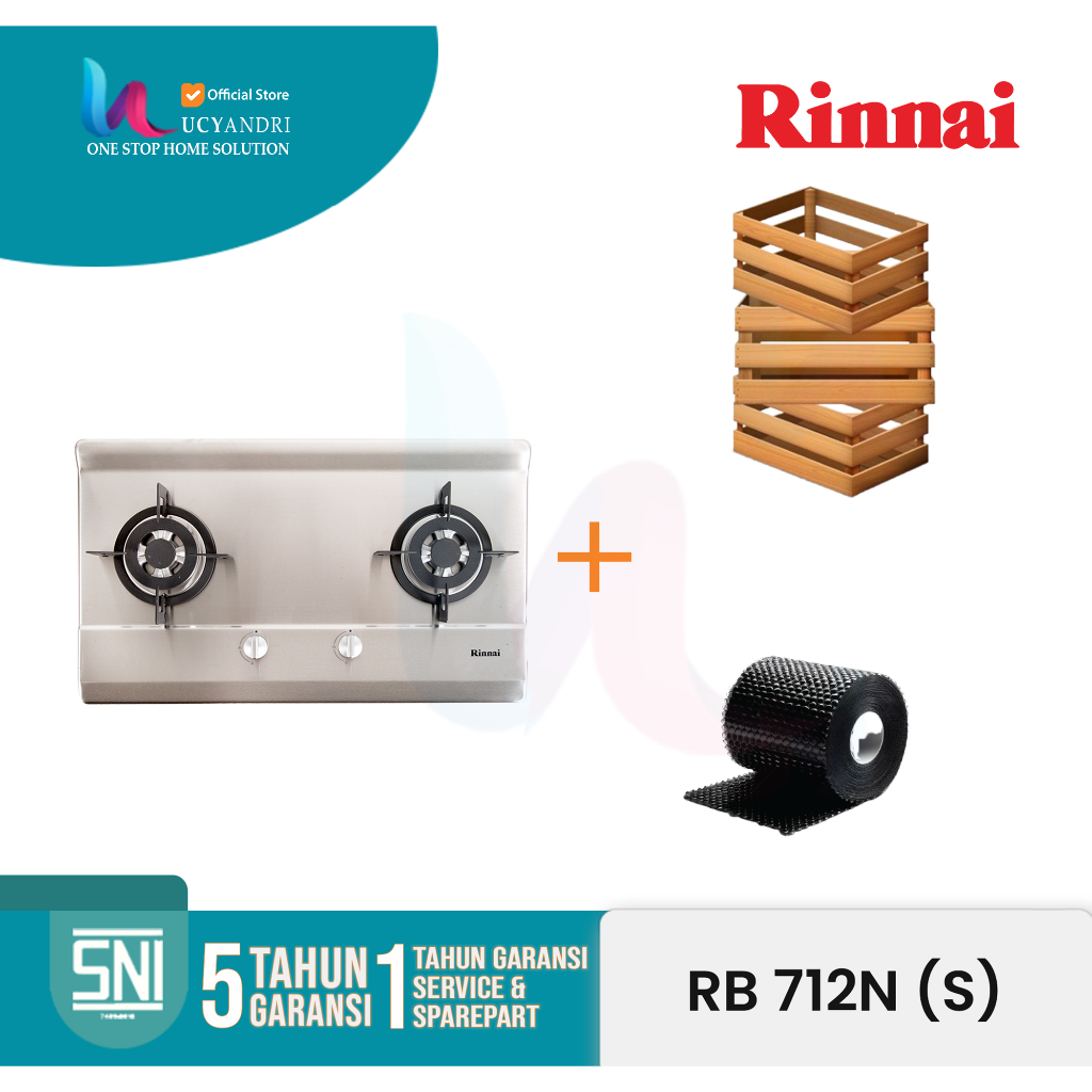 Kompor Gas Tanam 2 Tungku Stainless Rinnai RB-712N S / RB712NS ORI