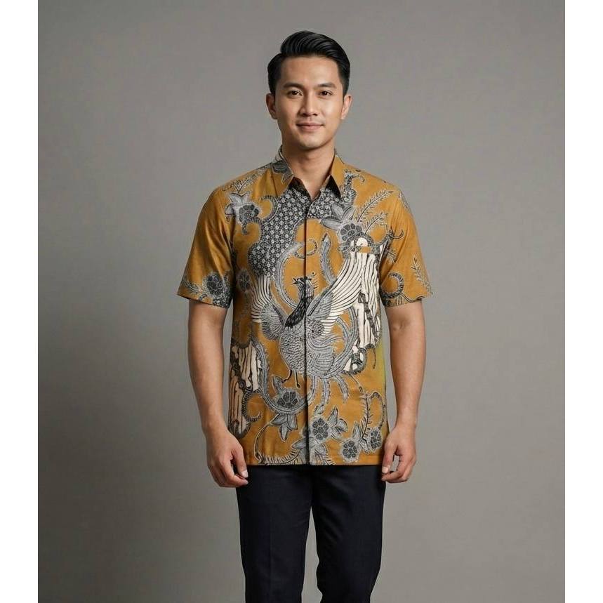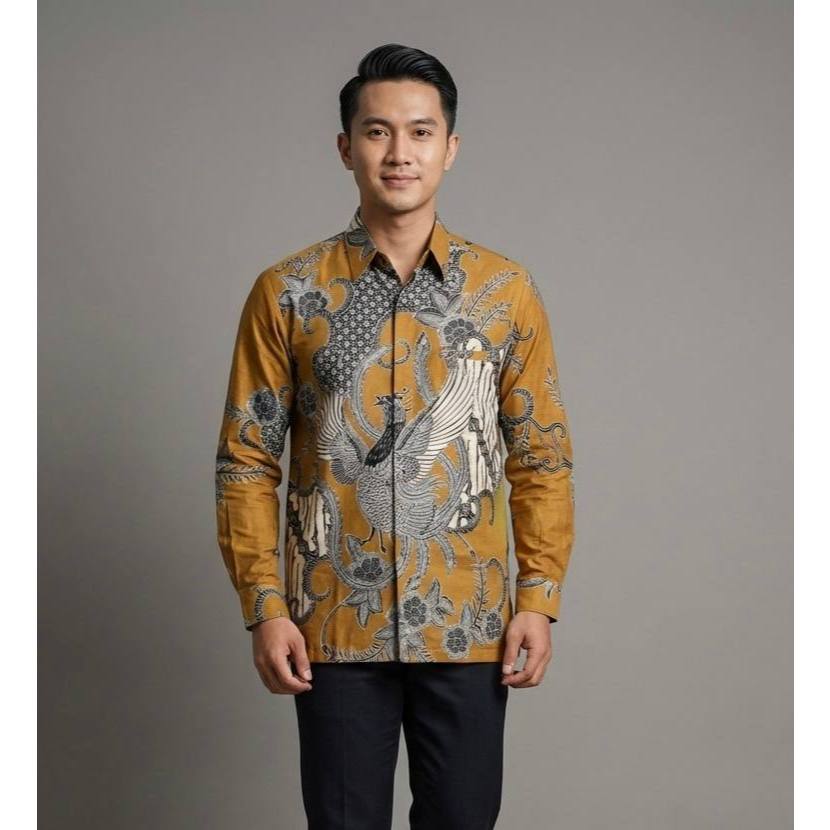 ADINATA COKLAT kemeja Batik pria lengan panjang pendek premium lapis furing badan katun halus