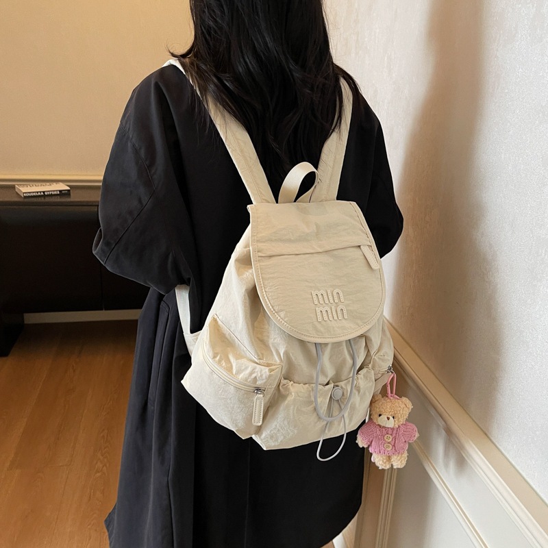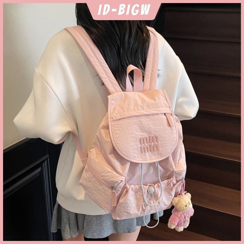 Tas Wanita Baru Gaya Sekolah Tas Ransel Tutup Lipat Gaya Hutan Dengan Tali Serut Banyak Kantong Tas Punggung Ganda