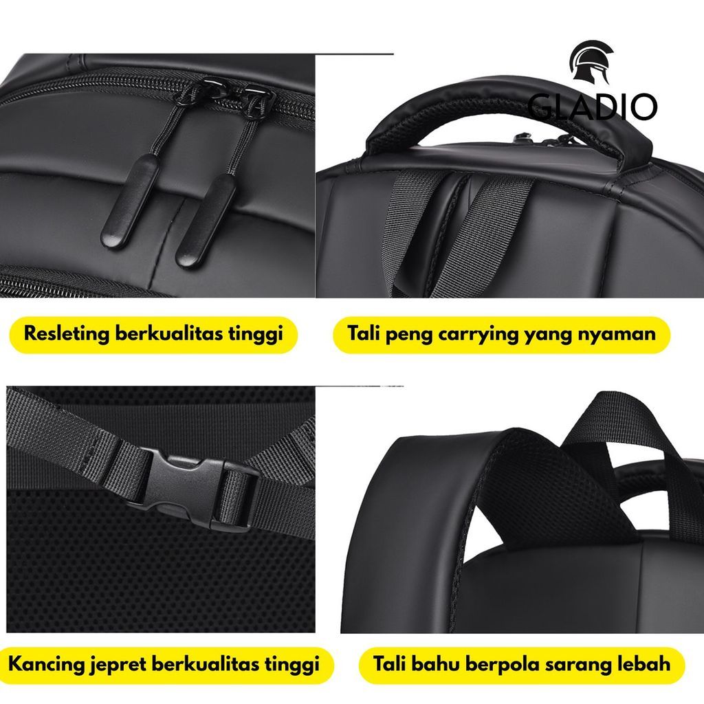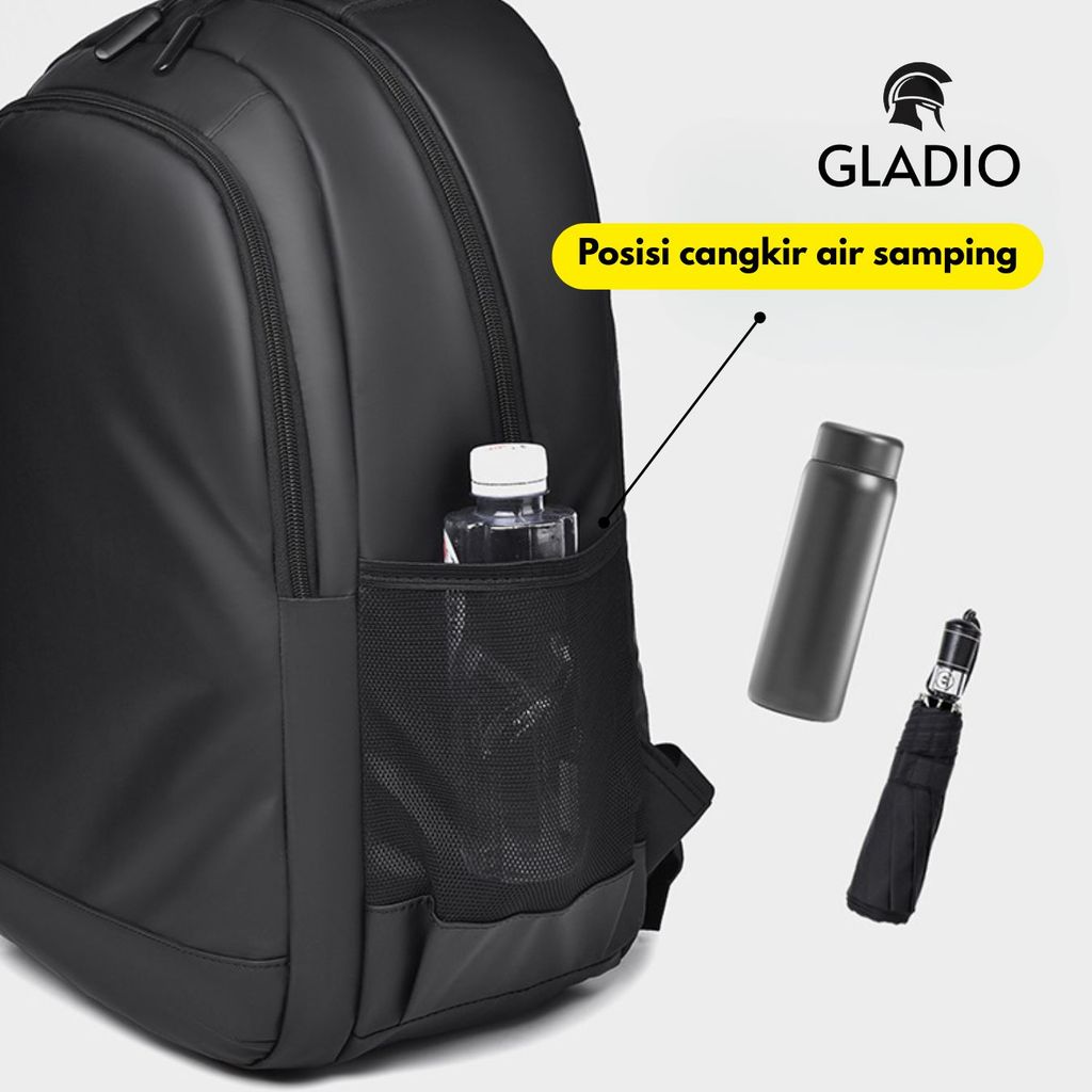 Gladio Tas Ransel Laptop Cowok Pria Premium Hitam Air GLD113B5 Anti Muat Amos