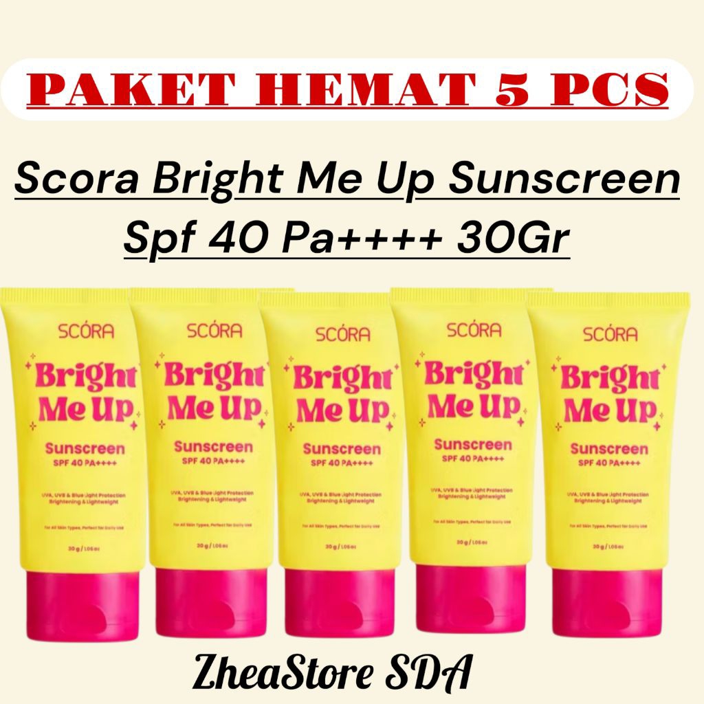 Paket Hemat Isi 5 Pcs SCORA BRIGHT ME UP SUNSCREEN SPF40 PA++++ 30Gr