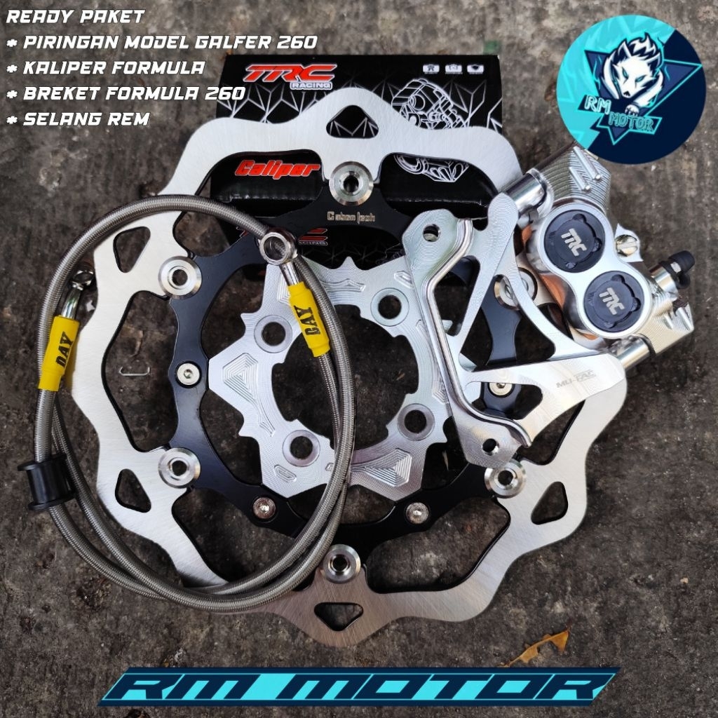 PAKET MURAH KALIPER TRC /8.1 + BREKET + DISK 260mm formula racing TRC CNC MIO SOUL MIO SMILE BEAT SCOOPY VARI125 150