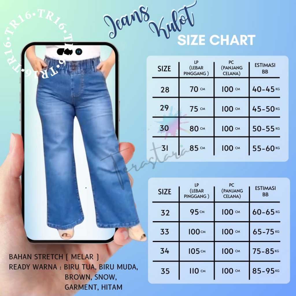 TR16 - PRODUK TERBARU CELANA JEANS CUTBRAY KULOT WANITA SZ 32-35 PINGGANG KARET SUPER JUMBO