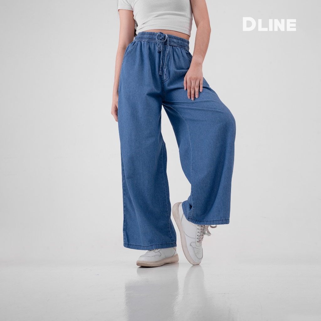 Celana Kulot Highwaist Panjang Jeans Wanita Fit XXL Bigsize Jumbo Pinggang Karet DLINE Coco Culotte