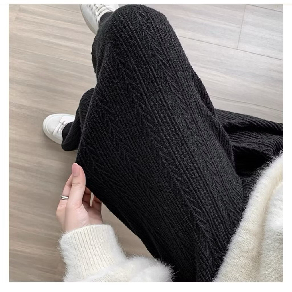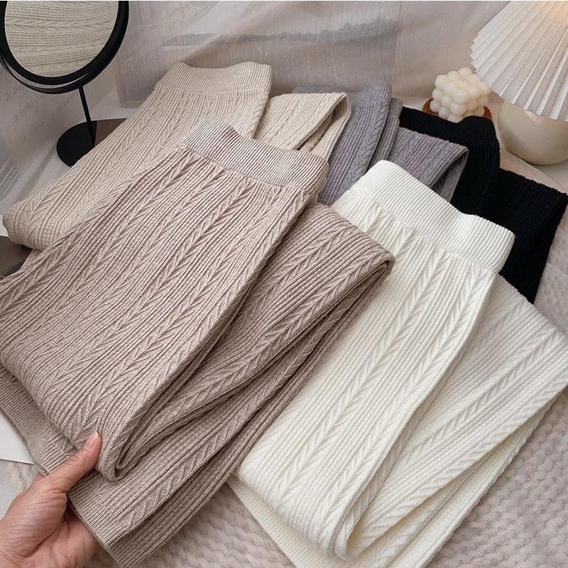chatta - DAEUN PANTS celana kulot panjang tekstur rajut cullote knit textured hitam abu khaki putih celana ibu hamil