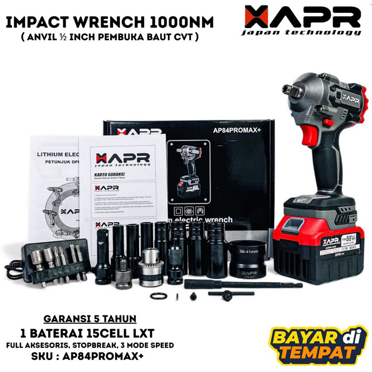 APR JAPAN AP84PROMAX+ Bor Impact cordless 88v 15cell 1000NM Mesin baut CVT Motor Mobil fullset