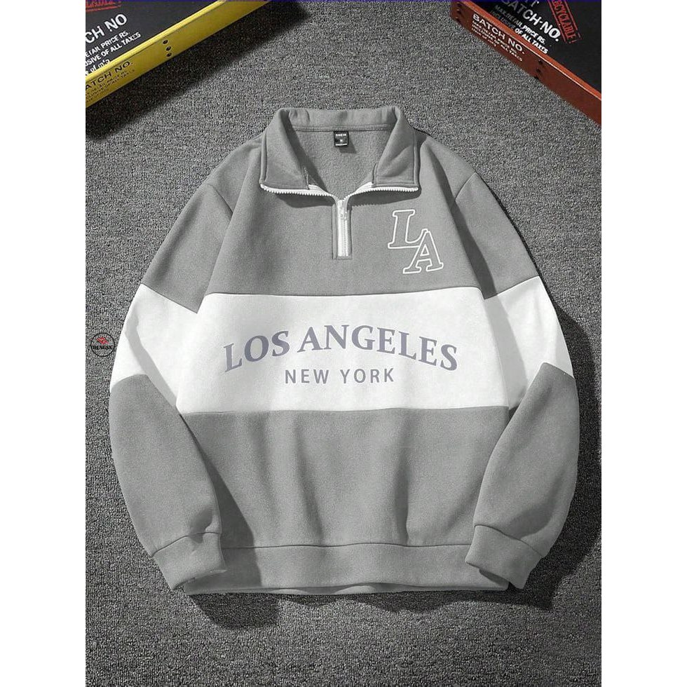 Sweater Rugby halfz zipper stripe terbaru sweater kerah CREWNECK Loseangels pria wanita