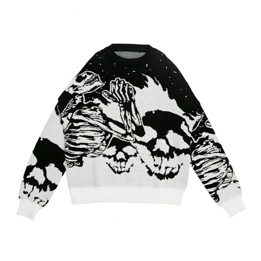 msa Sweater Rajut Skeleton Flame Unisex – Black White knitwear akrilik oversize