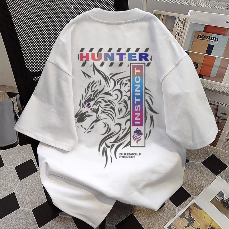 AUZY American retro Style T-shirt Oversize HUTER Print top| Kaos Wanita Hitam | Kaos pria dan wanita | Street Style 100 PERSENCotton top 11.13
