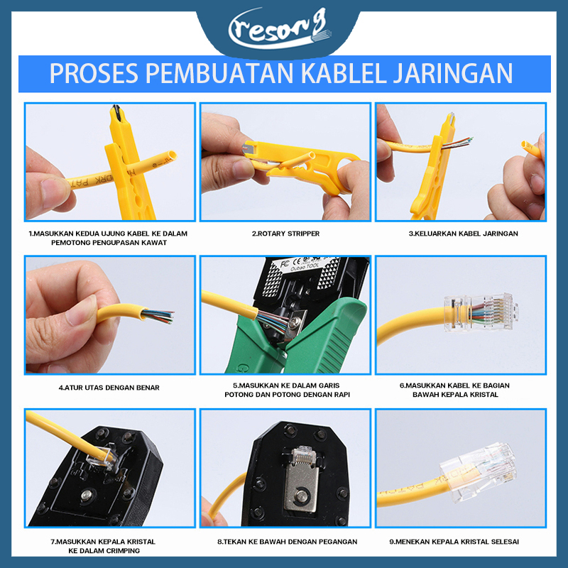 RESONG NETWORK CABLE REPAIR TOOL KIT SET ALAT SERVISJARINGAN INTERNET KOMPLIT SET PAKET TANG CRIMPING LAN