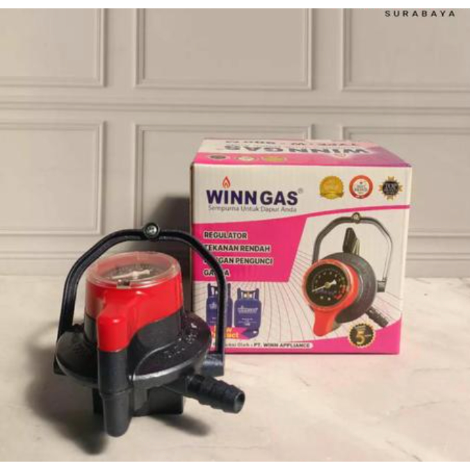 PAKET LENGKAP Regulator Gas Tipe METERAN Anti Bocor W900M Winn Gas 900 Meter Dobel Lock Triple Lock ORI + Selang Flexibl