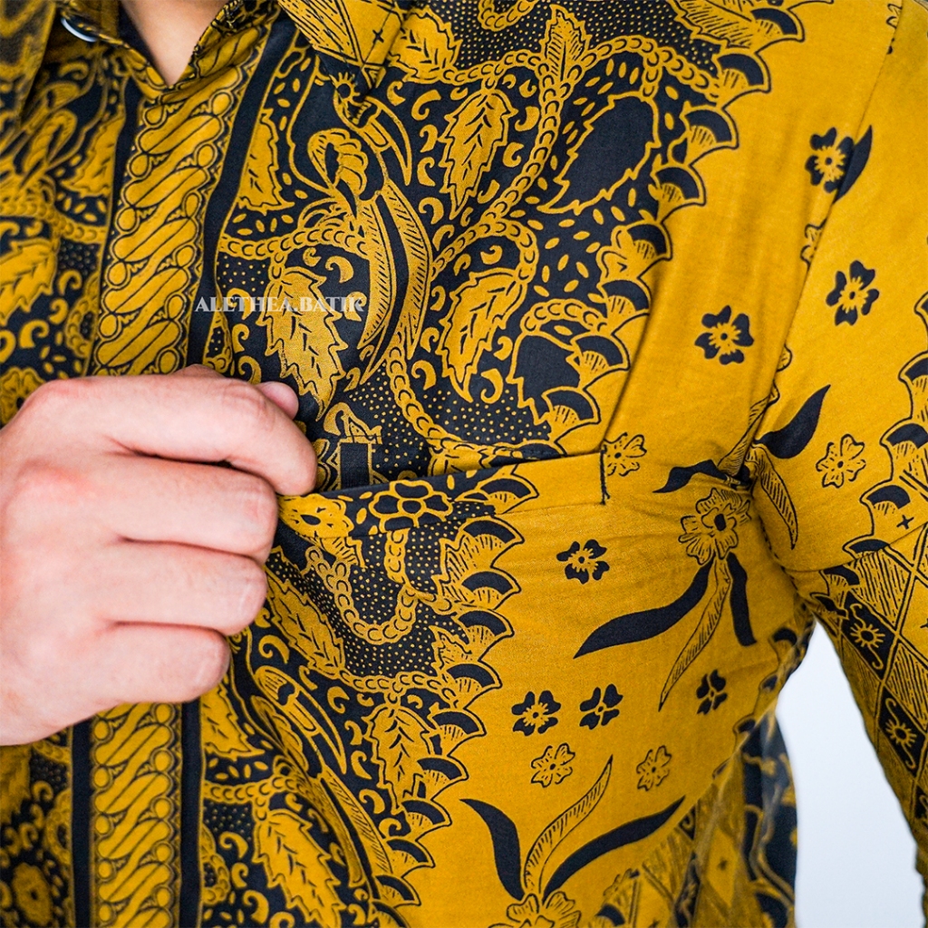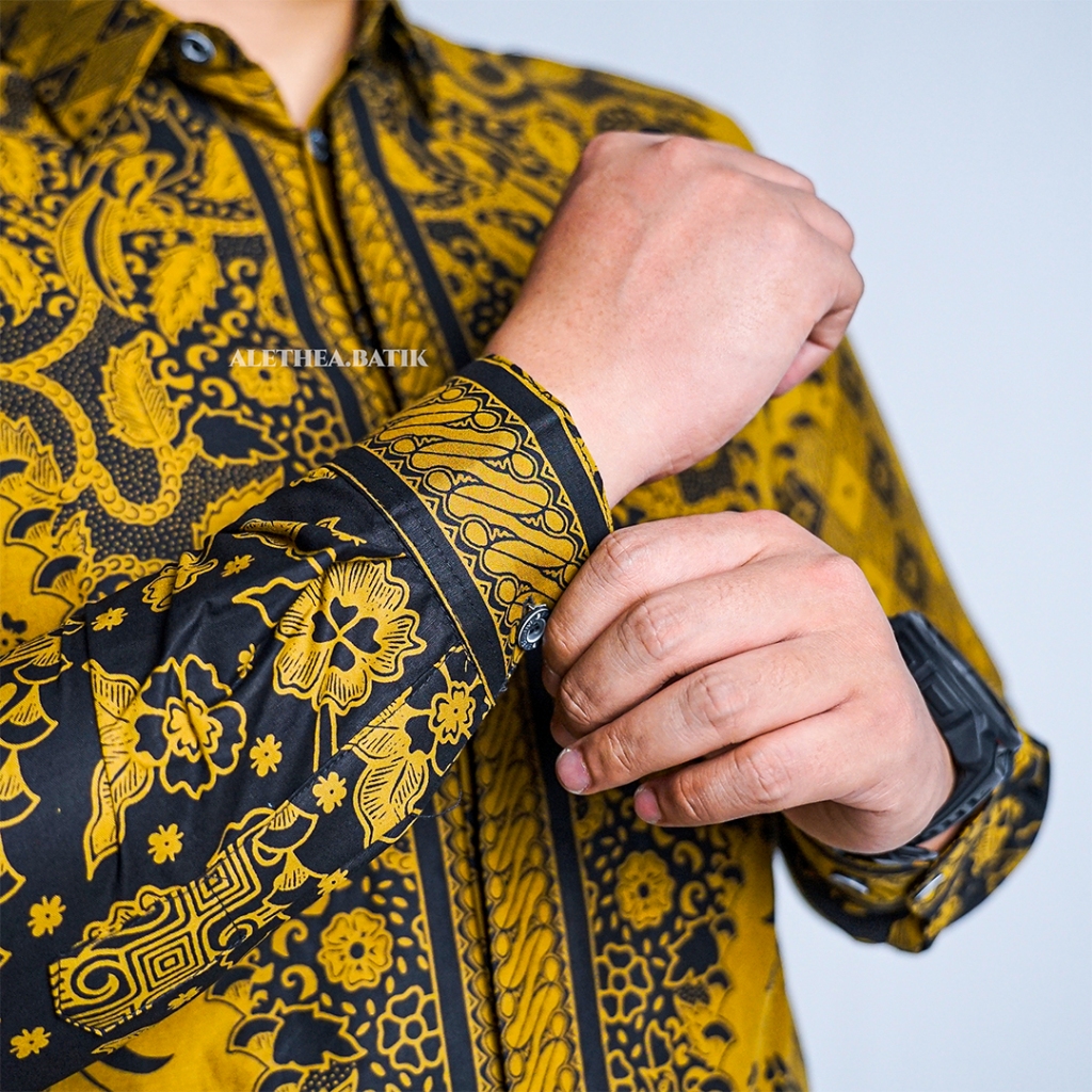 Kemeja Batik Pria Slimfit SINAR LEMON – Katun Sanforized, Handprinted, Furing | Jahitan Rapi | S–XXXXL