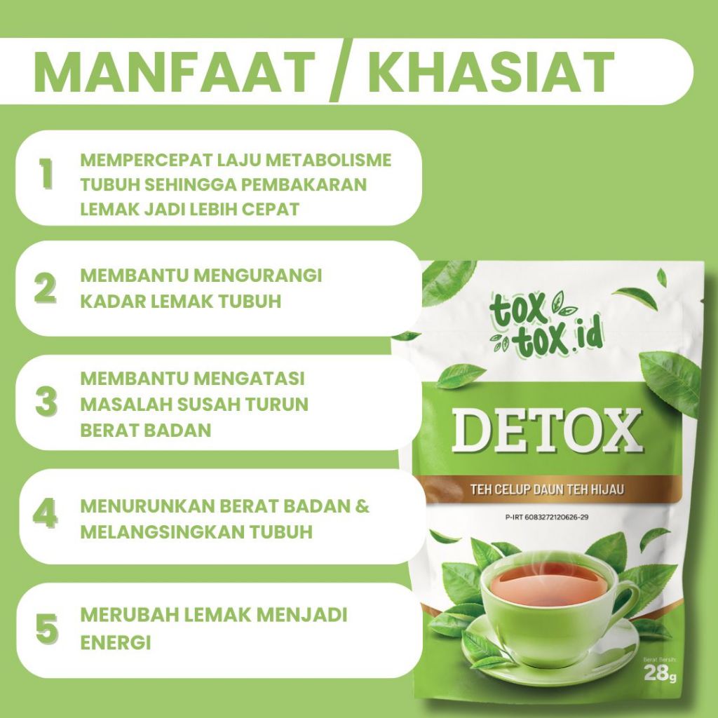TOXTOX DETOX Teh Hijau Diet Pelangsing Herbal – Turunkan Berat Badan & Hilangkan Perut Buncit