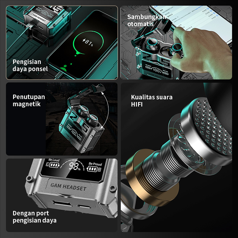 []M25 Wireless Bluetooth Headphones TWS 5.3 Low Latency In-Ear Noise Reduction Headset LED Mic Earbud Stereo Sports Gaming Earphone