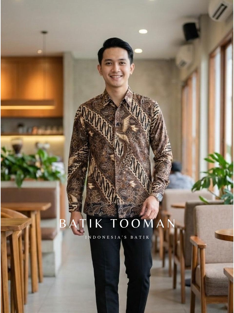 KALLA Brown Mahogani Slim Fit Baju Pria Kemeja Batik Lengan Panjang Warna Coklat Choco Bahan Katun Halus