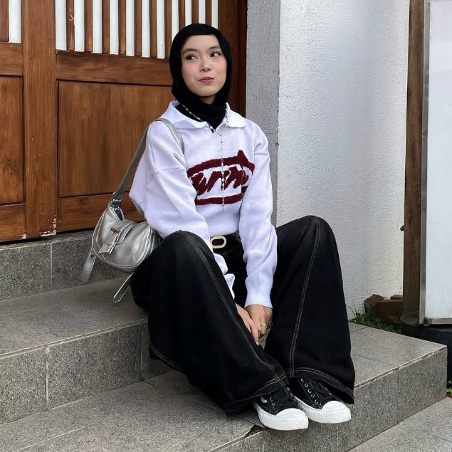WPCO - Knitwear BOXY Daisy White Football Knit Switer Unisex /Sweater Rajut Pria & Wanita