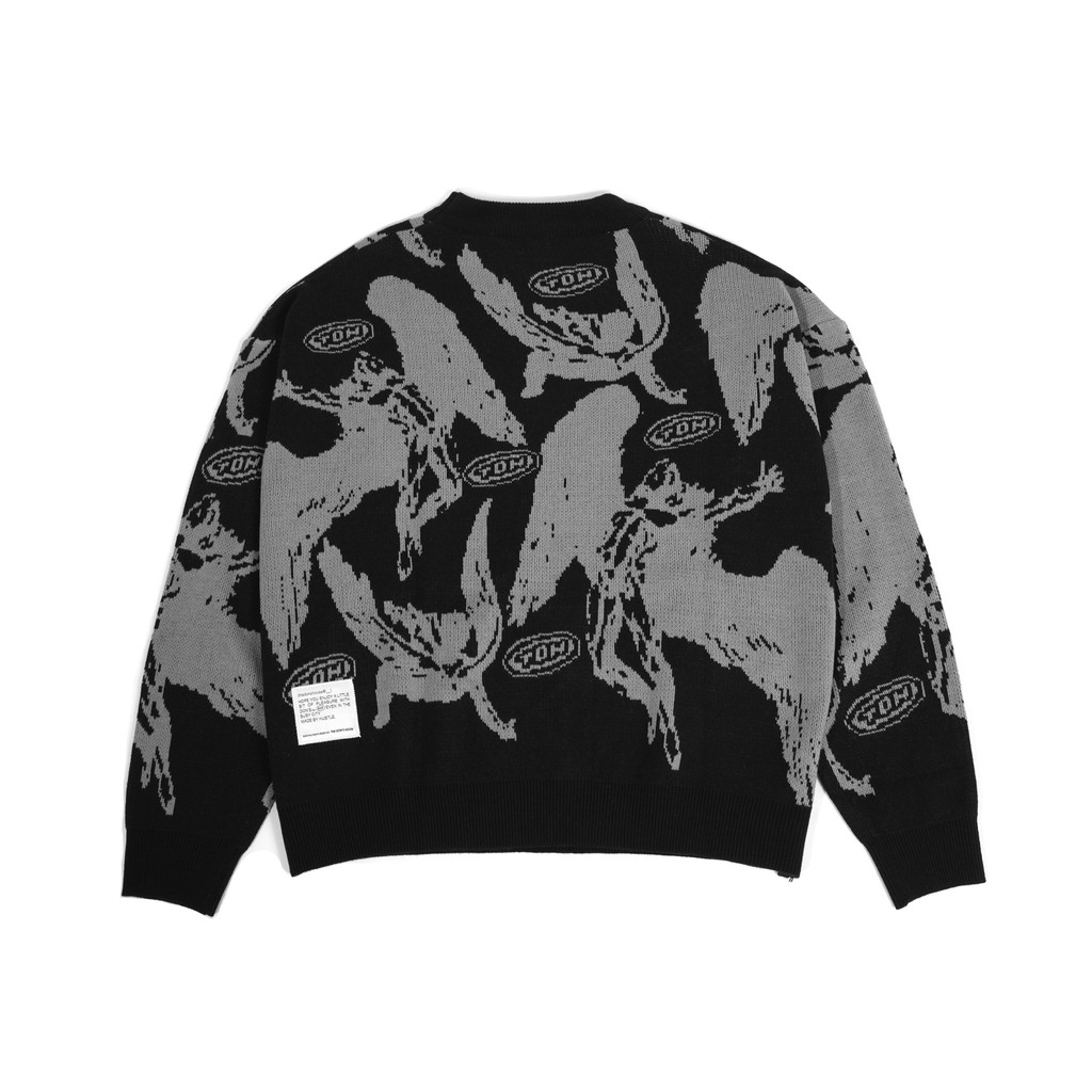 The Don's House GVARKA BOXY BLACK - Sweater Crewneck Knitwear Bahan Rajut Hitam Pria Wanita Fleece