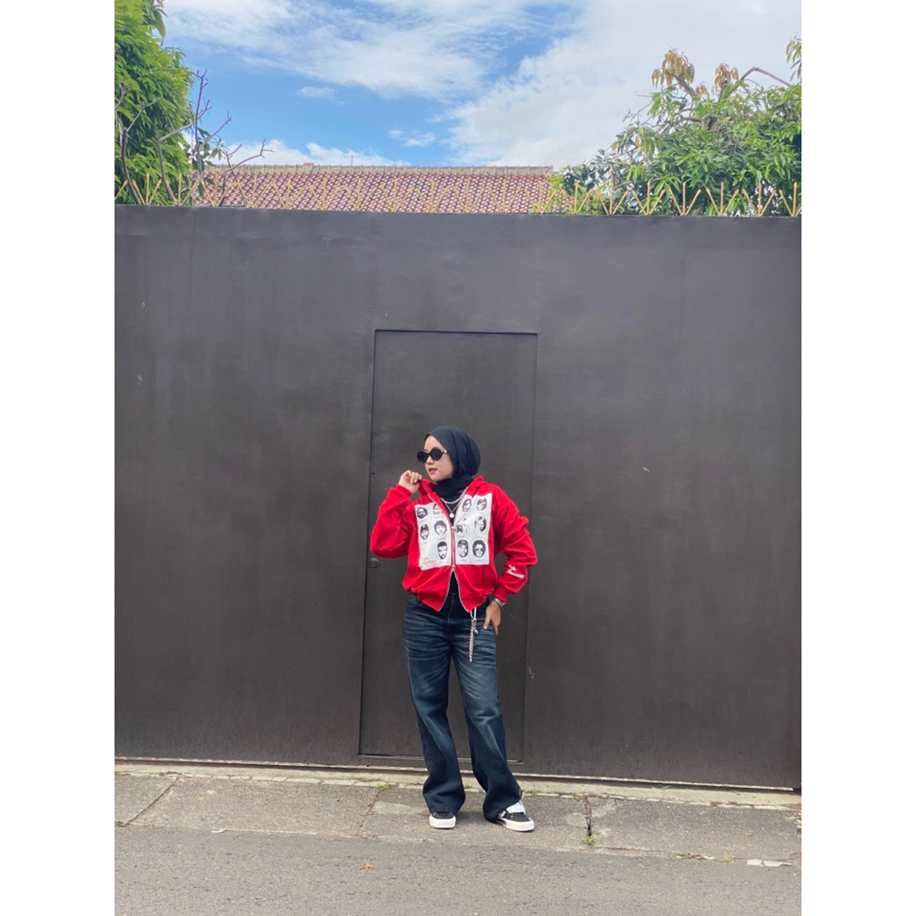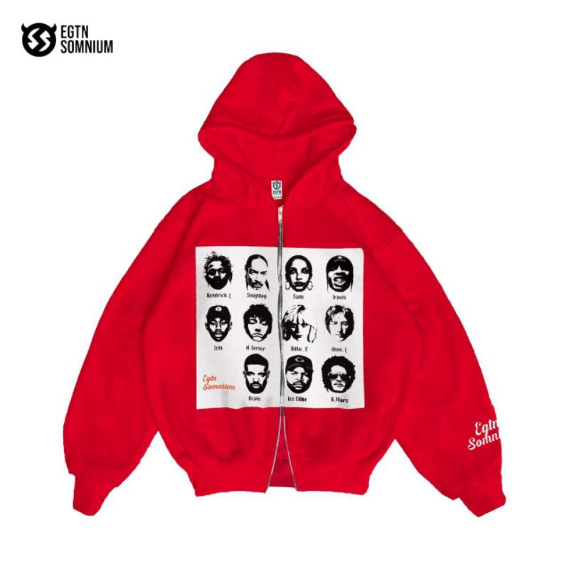 EGTN SOMNIUM Hoodie Boxy Double Resleting R&B Warna Merah Unisex Pria Wanita