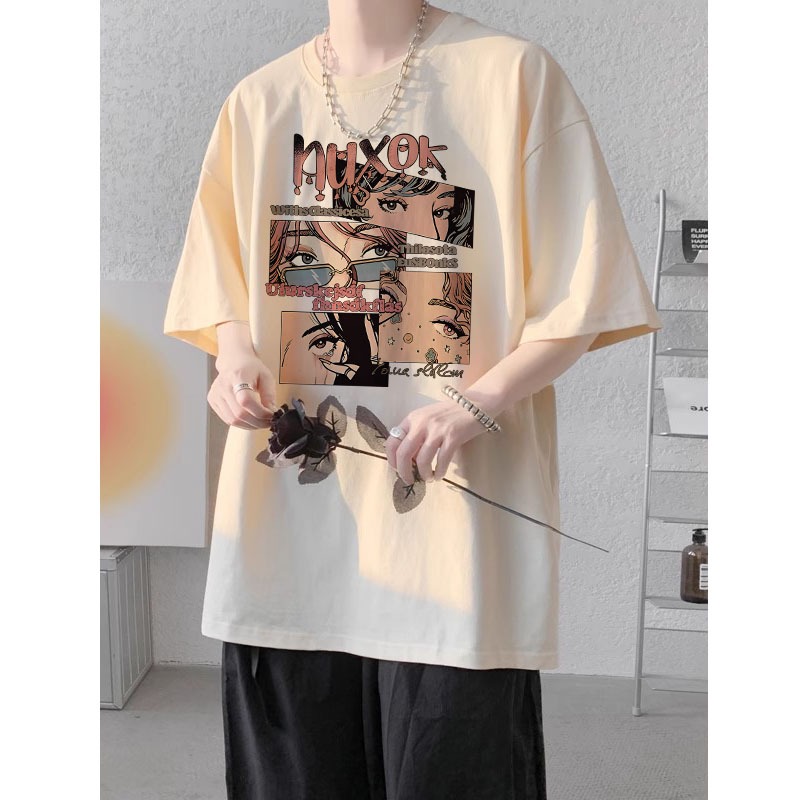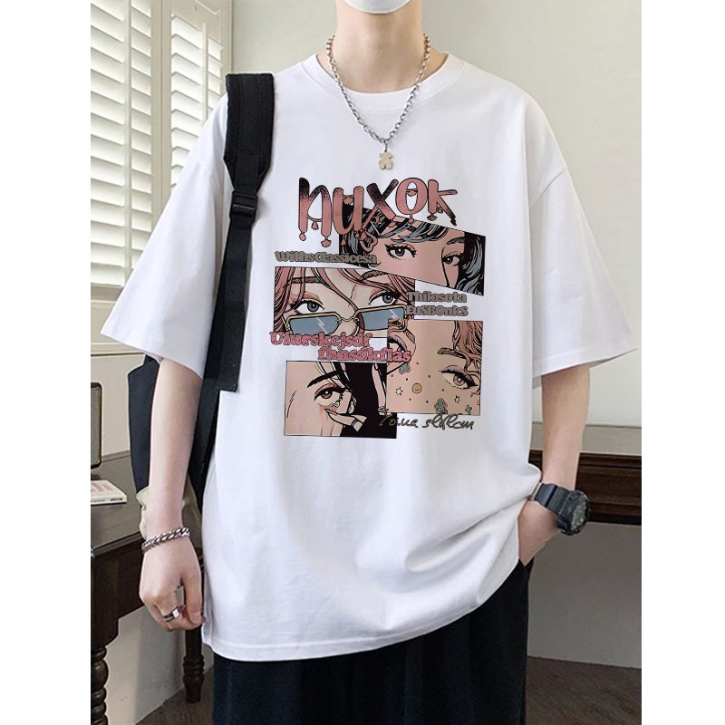AUZY AUXOK Gaya Jepang Anime Pencetakan kaos pria wanita atasan Lengan Pendek T-shirt skena baju oversize t shirt distro original 100 PERSEN 6.5