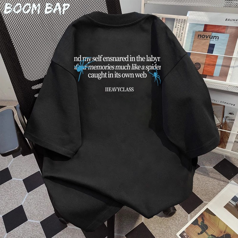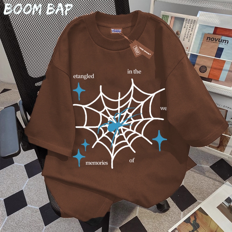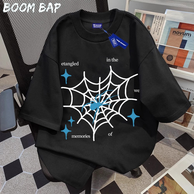 BOOMBAP American retro Style T-shirt Oversize jaring laba-laba Print top| Kaos Wanita Hitam | Kaos pria dan wanita | Street Style 100 PERSENCotton top 10.20