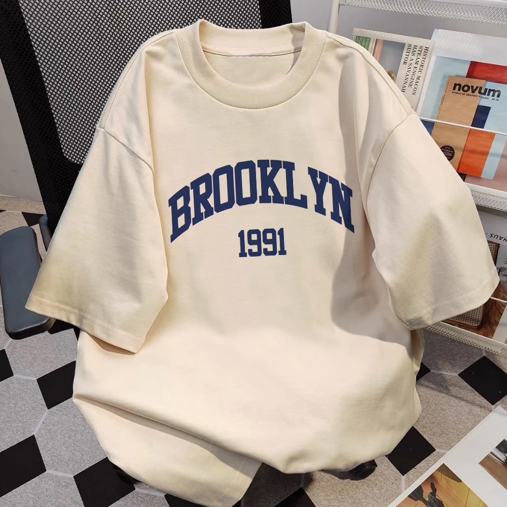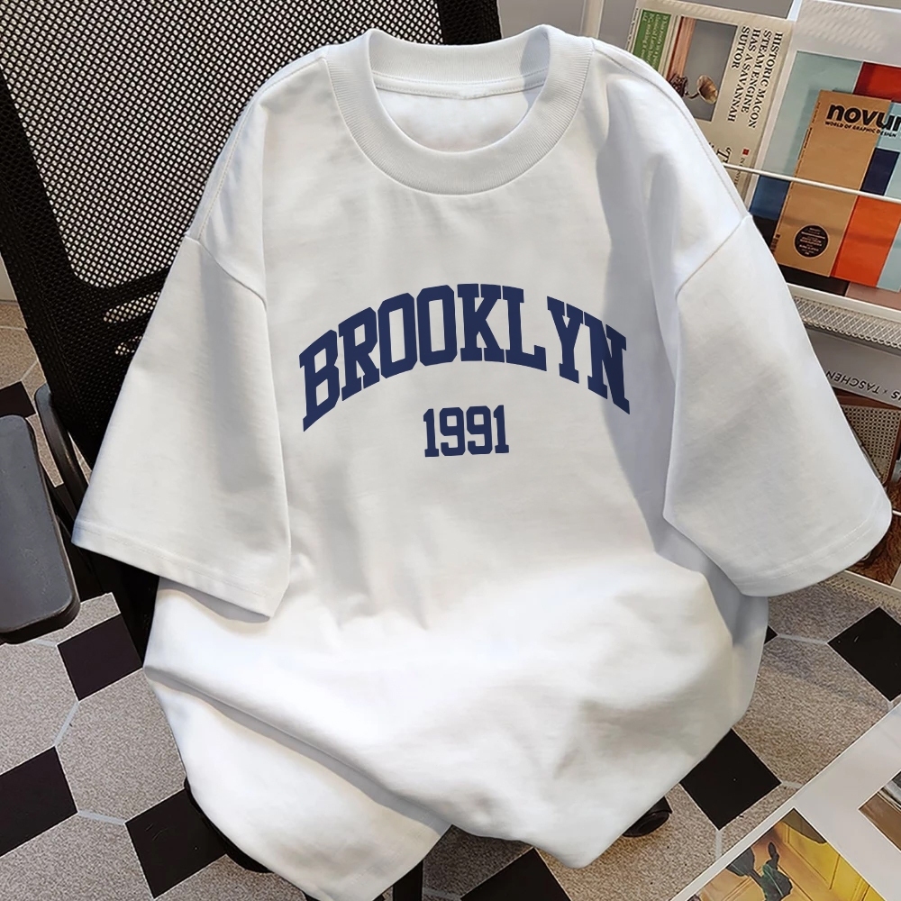 AUZY Kaos boxy pria putih premium |"1991 Brooklyn " Letter sablon T-shirt | unisex | Loose Fashion Round Neck T-shirt Top | baju oversize pria 11.19