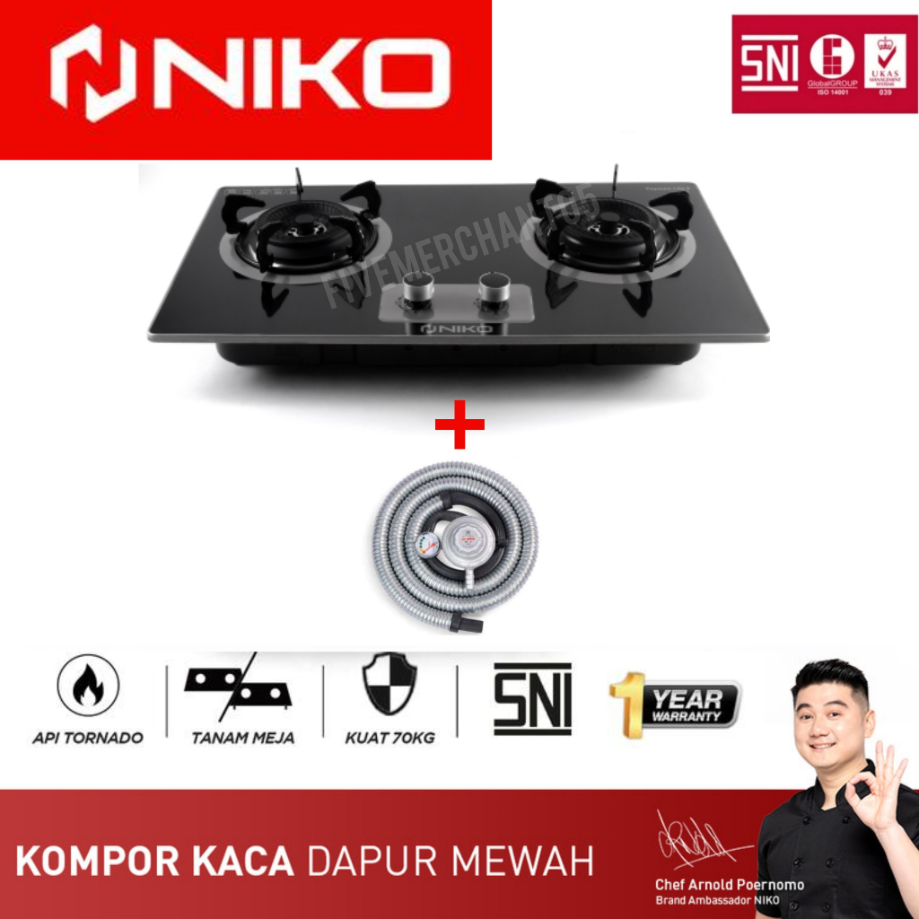 Kompor Gas Tanam Niko TITANIUM LITE DUA 2 Tungku Gas Stove Built in Hob 2 in 1 Meja dan Tanam Murah SNI