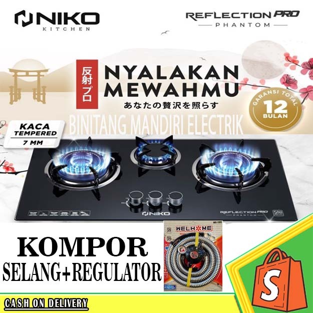 NIKO REFLECTION PRO PHANTOM KOMPOR GAS TANAM KACA 3 TUNGKU TEMPERED GLASS - BISA TANAM & MEJA
