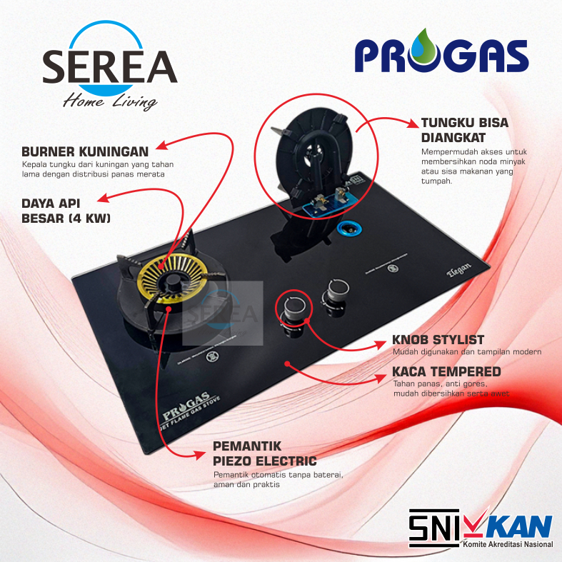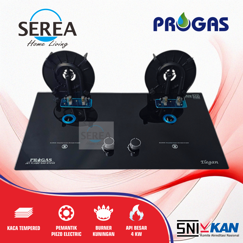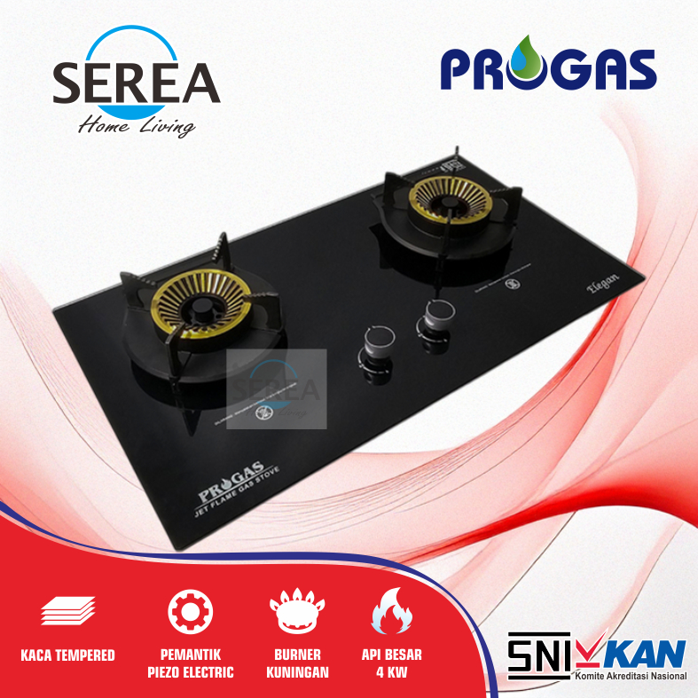 Kompor Gas Tanam Progas 2 Tungku Kaca Elegan Tungku Bisa Diangkat Api Besar SNI