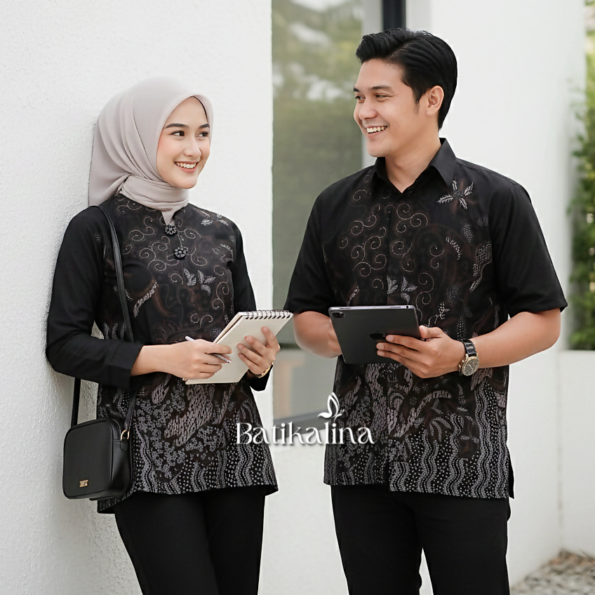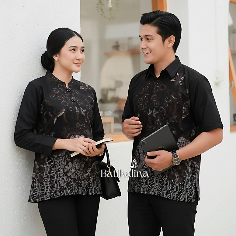 BATIKALINA - Batik Couple Modern Atasan Blouse Batik Kerja Kantor Wanita Seragam Batik M L XL XXL