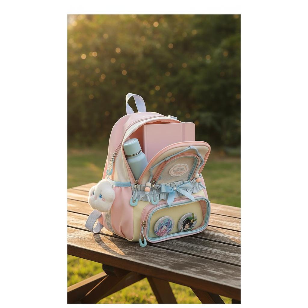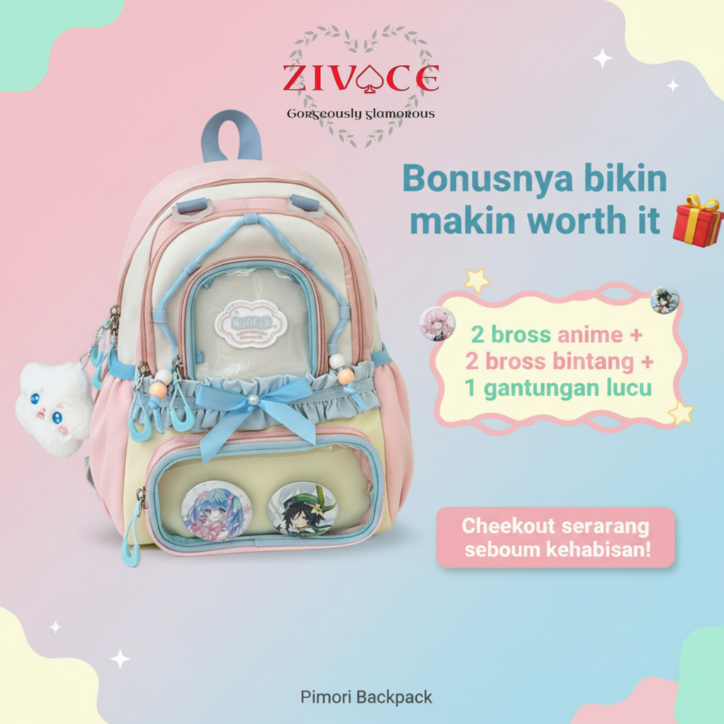 Pimori Ransel Pastel Anti Air Aesthetic | Tas Sekolah Korea Kawaii | Banyak Kantong