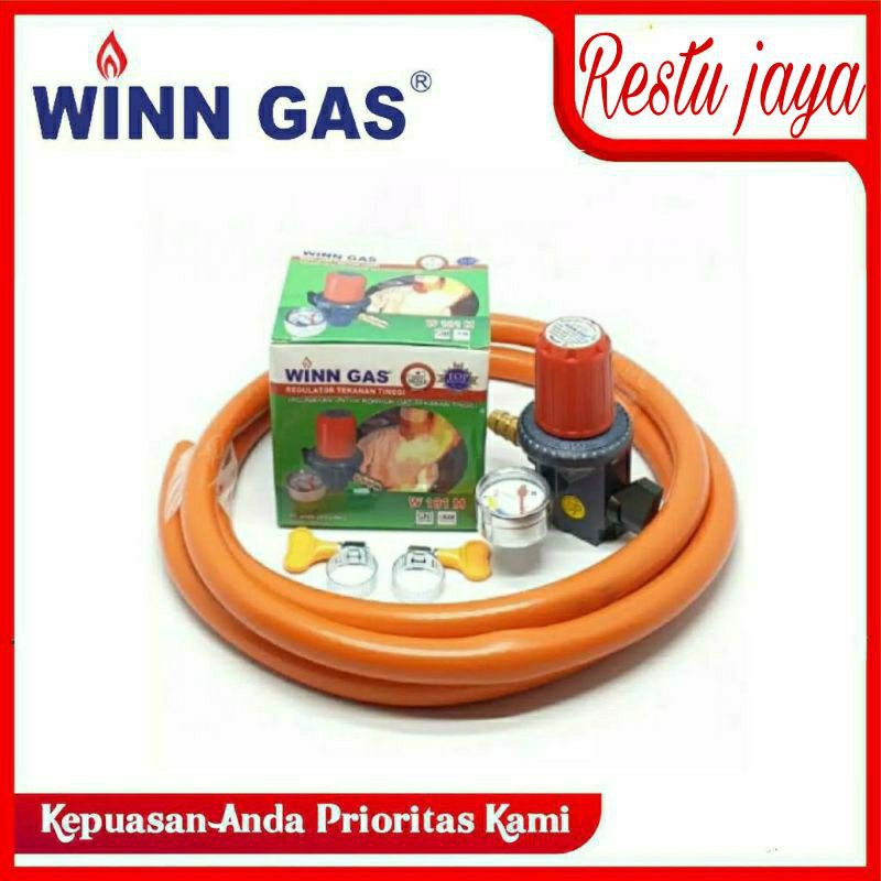 Regulator gas tekanan tinggi win gas w181 meter+selang orange 2 meter+2 kleam