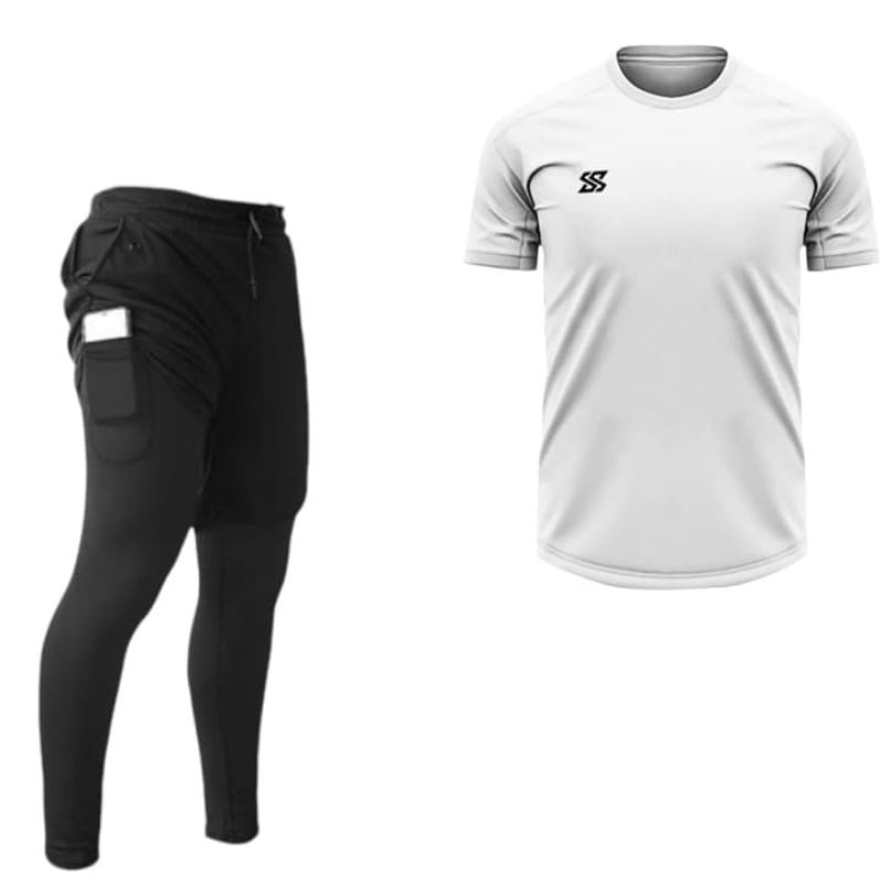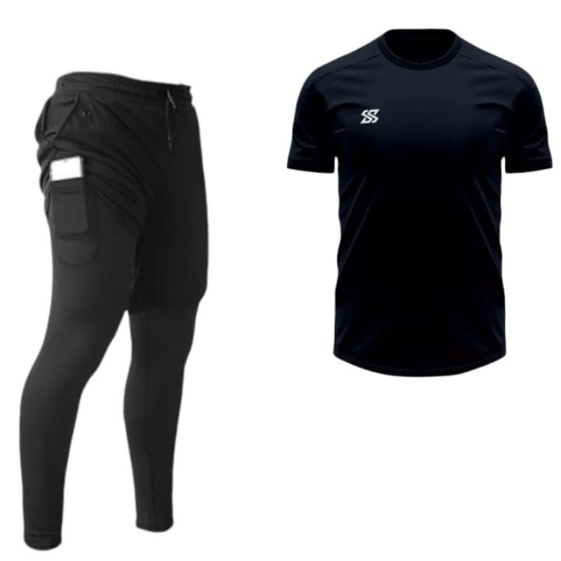 Stelan Baju Jersey Dan Celana Panjang 2in1 Badminton Gym Running Fitnes Voly