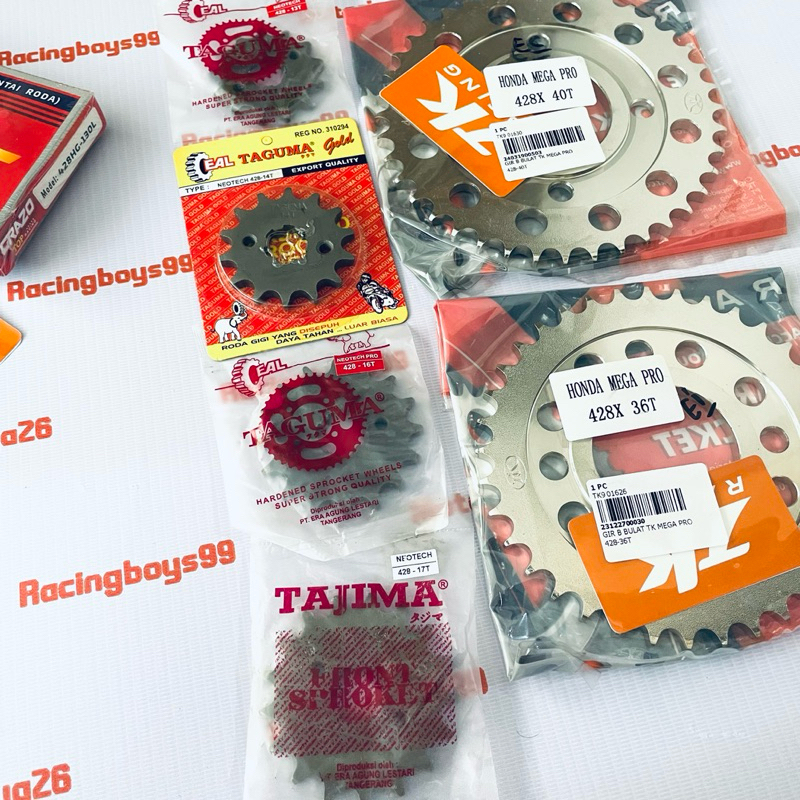 Gear set Mega Pro Gl pro neotech sonic verza cb150 cbr150 36 37 38 39 40 41 42 43 44 45 46 TK Racing set Rantai Gold 428