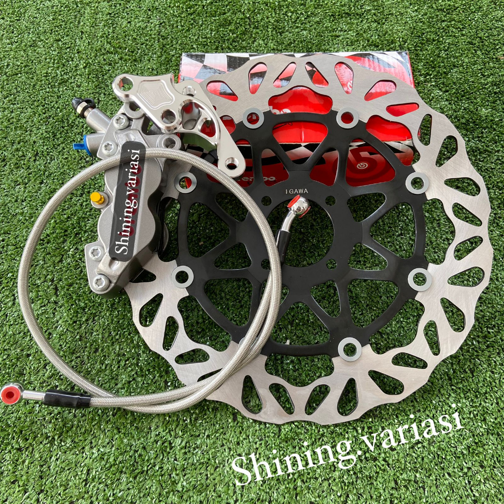 PAKET KALIPER BIGPOT 4 PISTON BRCM + DISC CAKRAM LEBAR 300MM + SELANG REM DEPAN 95CM + BREKET KALIPER 300MM RX KING OLD/