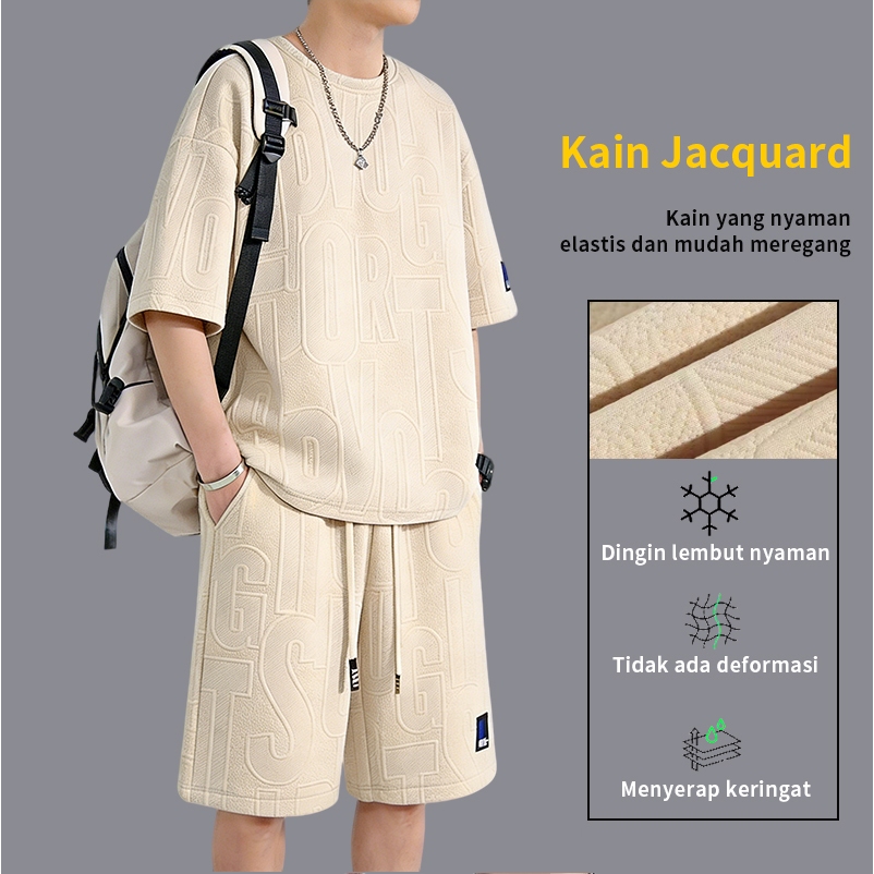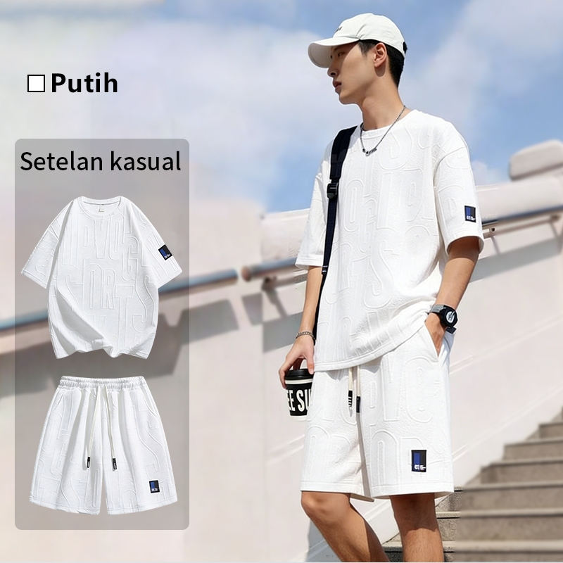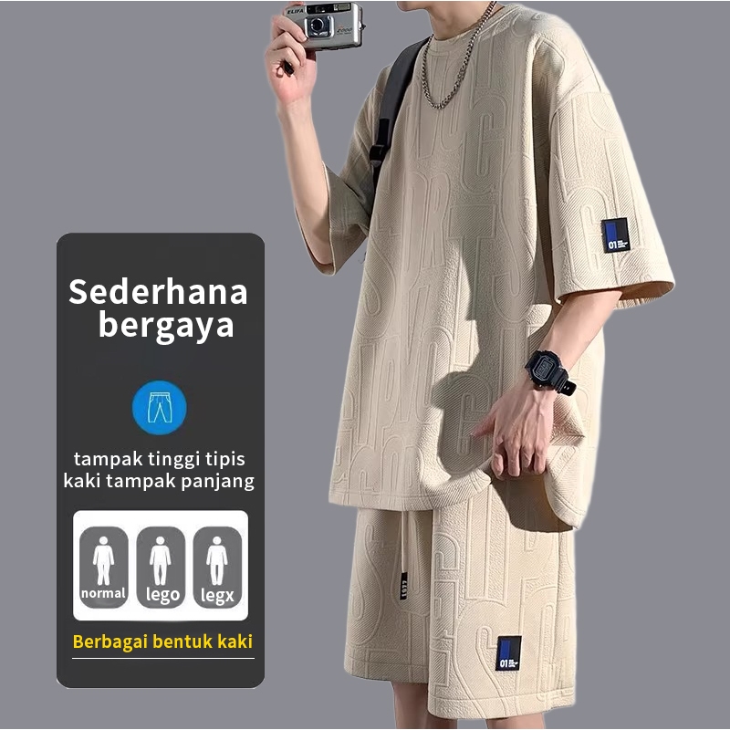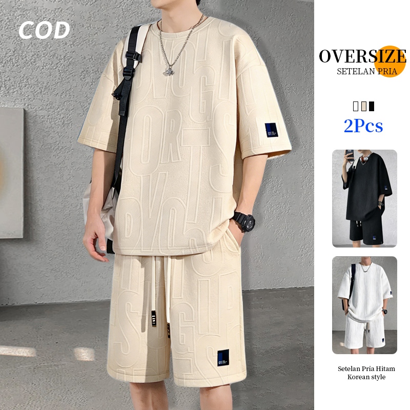Baju Setelan Pria Hitam Outfit Korean Style Terbaru Oversize Setelan Olahraga Waffle Cowok Satu Set