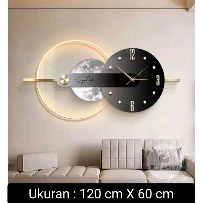jam dinding led besar mewah estetik - bulu tidur biru 120x54
