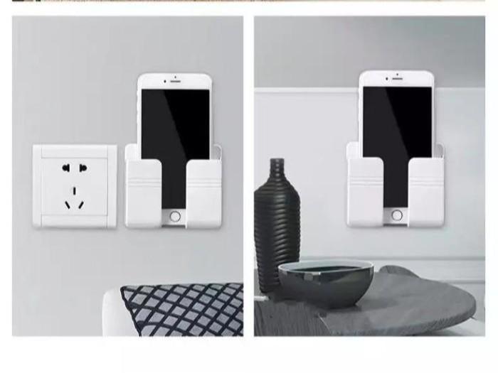 holder hp tempel dinding rak remote Charger tembok Stand phone holder - Putih