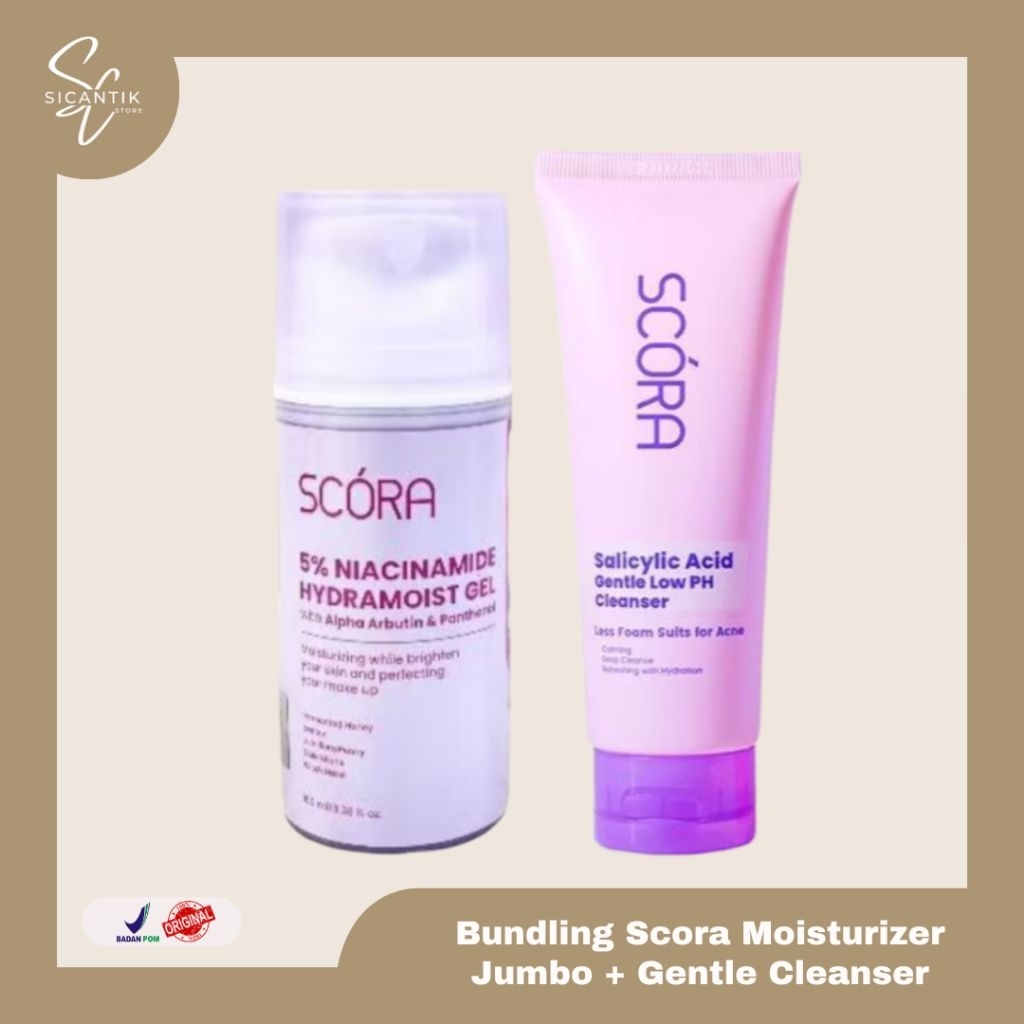 BUNDLING 2IN1 SCORA MOISTURIZER 5 PERSEN NIACINAMIDE HYDRAMOIST GEL JUMBO 100 ml + SCORA SALICYLIC ACID GENTLE LOW pH CLEANSE