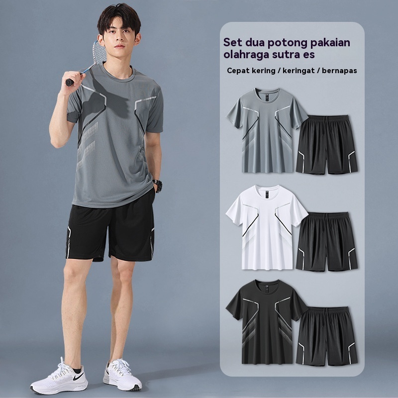 Setelan Olahraga Pria Bahan Ice Silk – Adem, Cepat Kering & Nyaman Dipakai