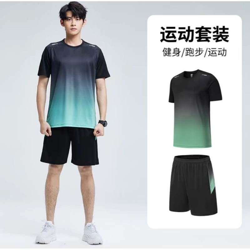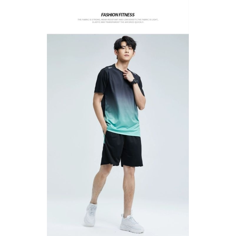 Setelan kaos olahraga pria Original Import HITAM HIJAU PROMO TOKO