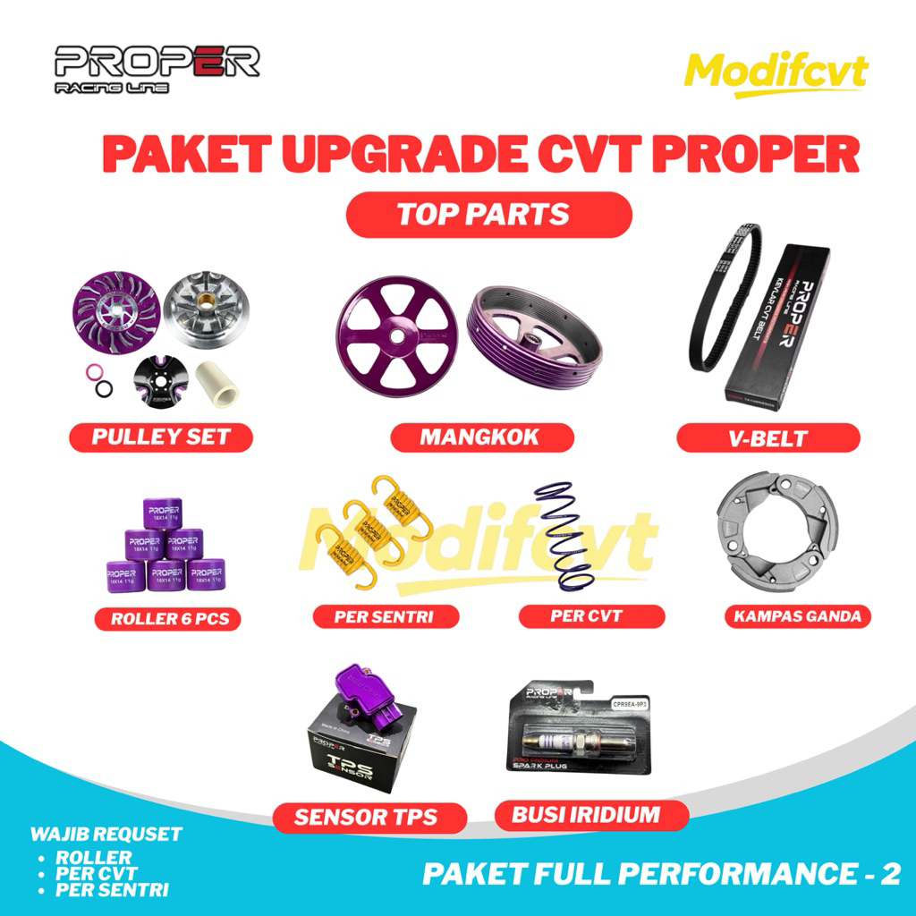 PAKET UPGRADE CVT PROPER FULL PERFORMANCE-2 VARIO 125-150 PCX ADV BEAT SCOOPY GENIO STYLO PAKET UPGRADE CVT PROPER PAKET